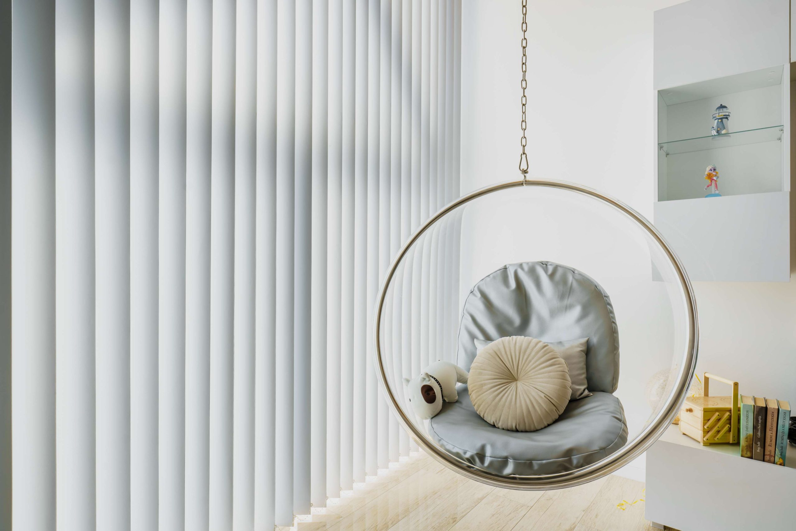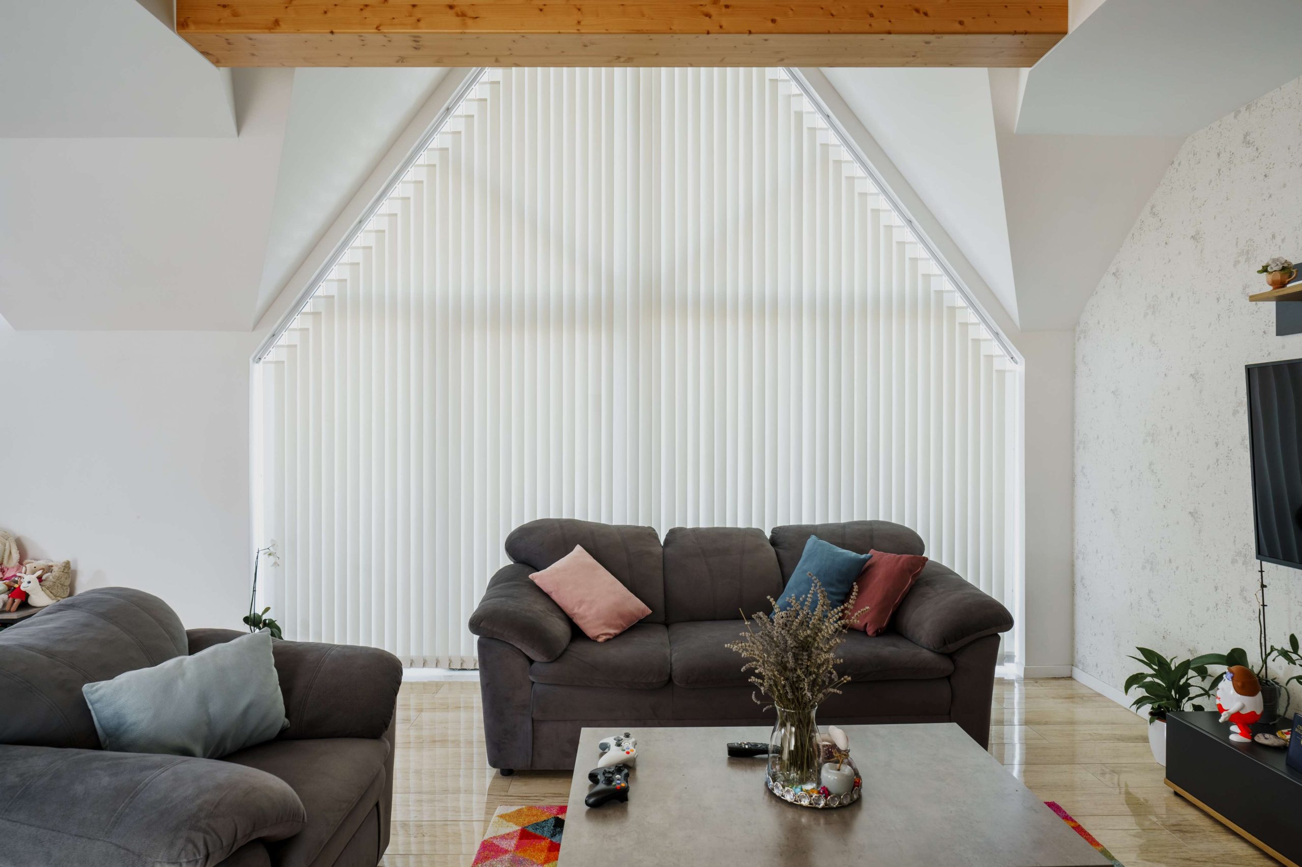 a szalagfüggöny szintén ideális megoldás. Nagy felületeken is könnyen kezelhető, és itt is különlegesen elegánsan mutat.